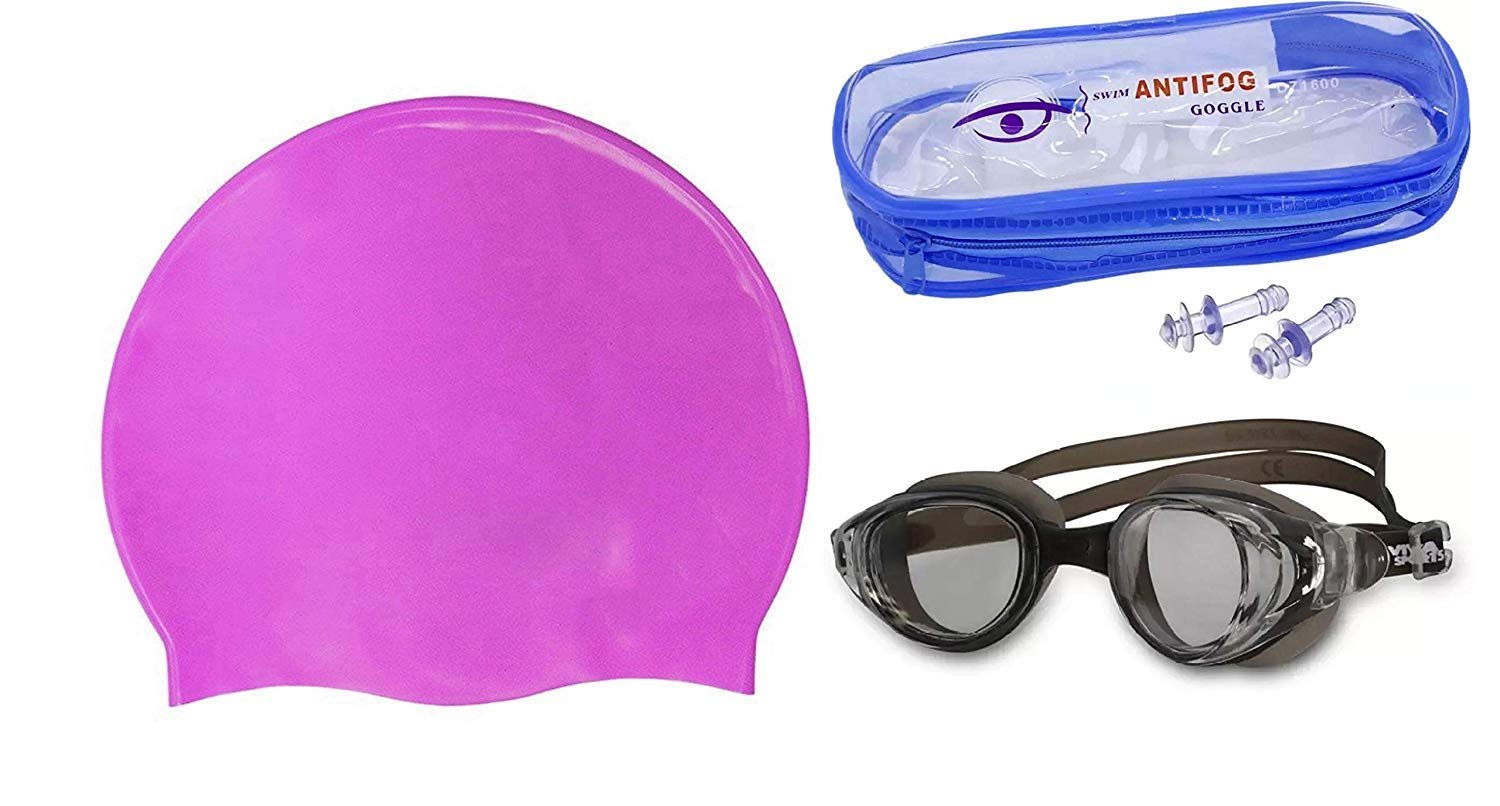 Swimming Goggles, Cap, Ear Plugs Kit